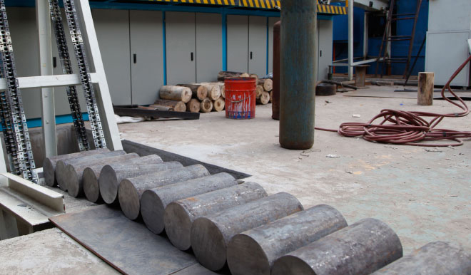该智能流水线将锻压和碾压轧制工艺融为一体,从毛坯下料、上料、加热、初锻、碾压成型到成品输出,实现了自动化流水作业。它是我公司《起重机车轮碾压成型新工艺装备》、《起重机车轮锻压用新型加热工艺装备》等多项专利技术成果转化为生产力的标志。